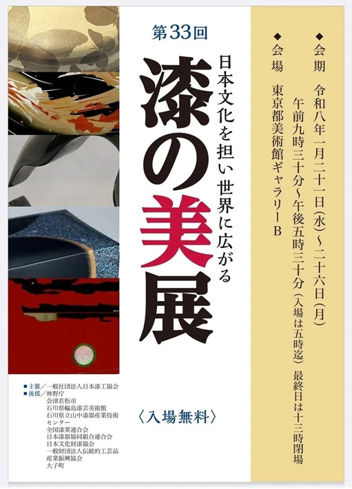 1月21日~26日に東京都美術館で「第33回漆の美展」開催