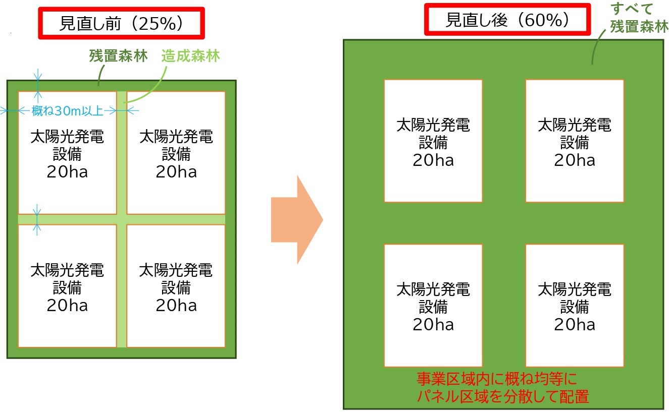 メガソーラーに関する林地開発規制を強化、残地森林率等を60%に引き上げ