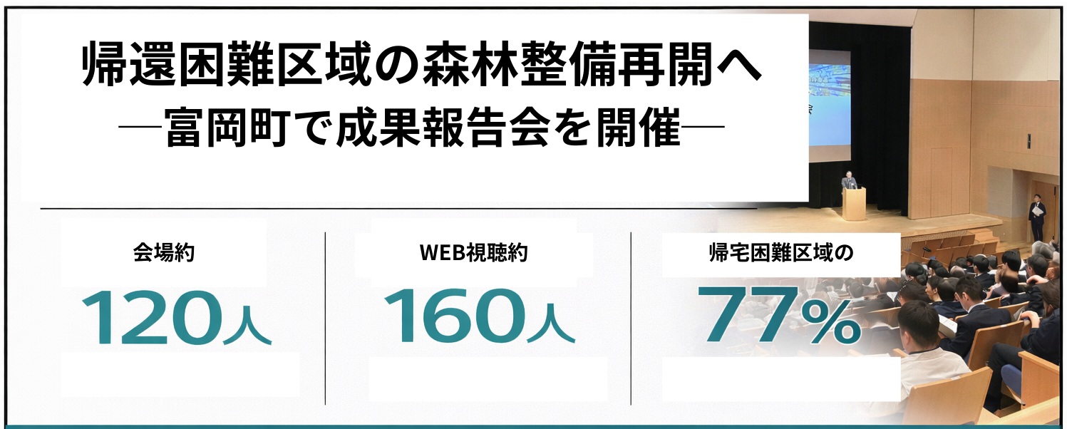 関東森林管理局は、原発事故で放射能汚染の被害を受けた福島県の帰還困難区域における森林整備再開に向け、今年度(2025年)実施した実証事業の成果報告会を1月29日に同県富岡町で開いた。 会場の富