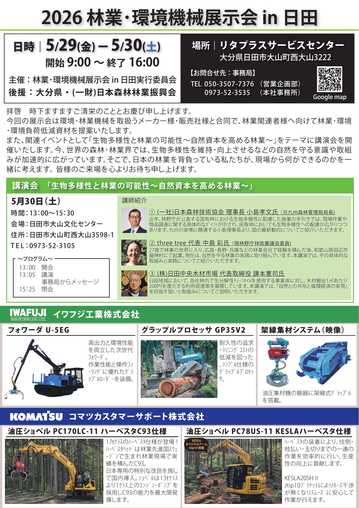 11月に開催する「森林・林業・環境機械展示実演会」に出展する企業等を募集中
