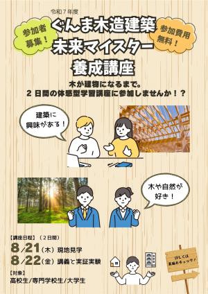8月21・22日に「ぐんま木造建築未来マイスター養成講座」
