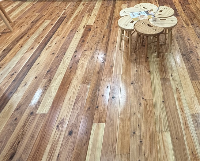 水拭きだけで簡単に手入れできる「RP加工高知杉床材」使用