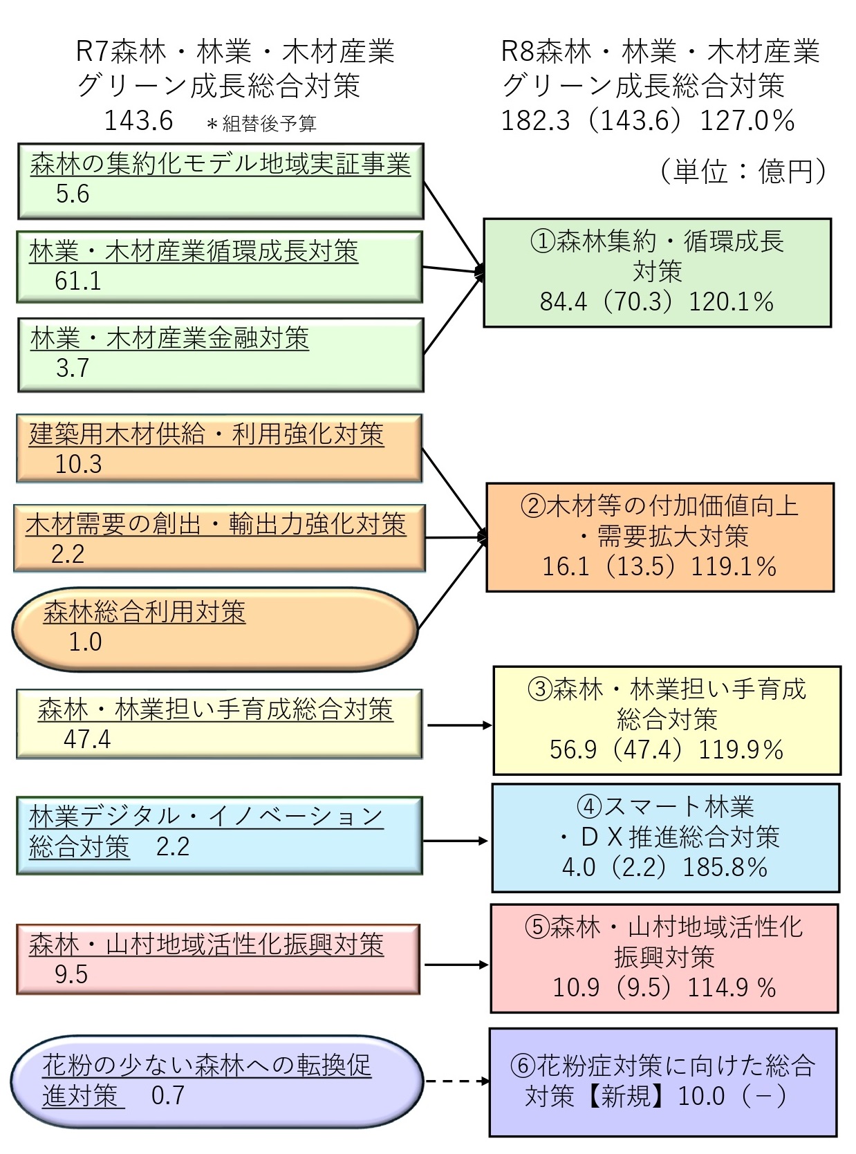 花粉対策は、当時の岸田首相が政権浮揚を狙って突如ぶち上げたもので*5、林野庁は応急的に補正予算で必要経費を手当てしてきた。それが元の鞘(さや)に戻ったかたちだ。