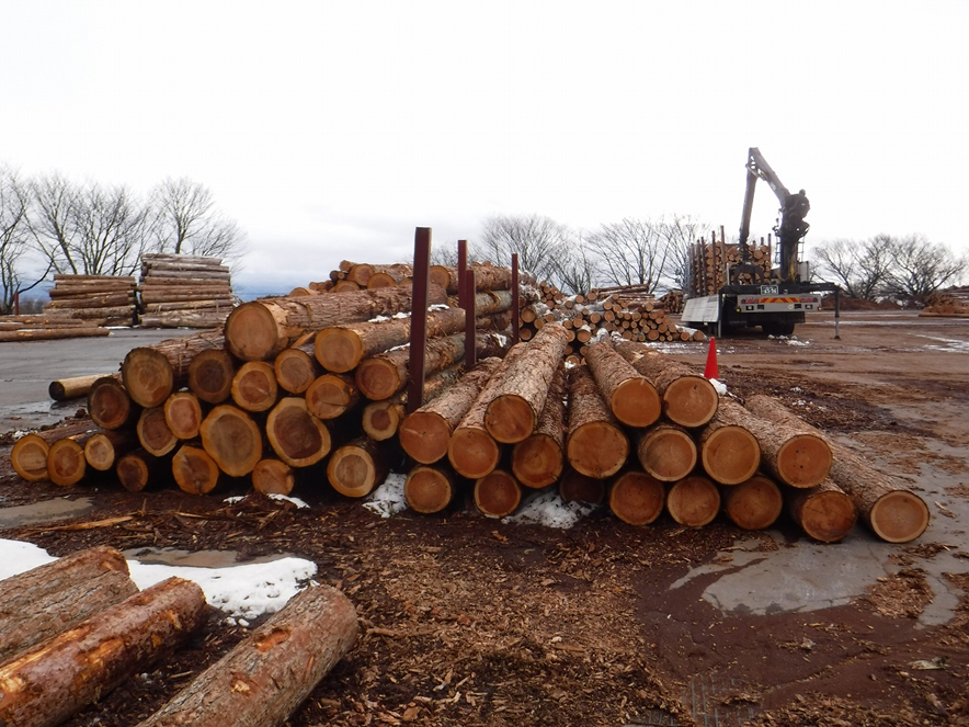 東信木材センターは、長野県下最大のカラマツ原木販売業者であり、2024年度の原木取扱量は11万m³に達している。このうち、カラマツ原木の取扱量は9万5,000m³と、全体の9割近くを占める。この20年ほどで国産カラマツに対する合板メーカーの需要が急増したことを受け、東北、関東、北陸など長野県外への出荷量が大きく増加している。