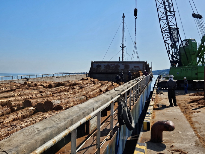「物流の2024年問題」の影響で、下北半島など遠隔地からの原木輸送はさらに困難になっている。従来はトラックで輸送可能だった距離でも、トラックドライバーの労働時間規制により実質的に不可能となるケースが出てきており、委託料も上昇傾向にある。 こうした状況を受けて、同連合会は、原木の船舶輸送をさらに拡大していくことを計画している。そのためには必要な船舶を確実に確保していくことが重要であり、内航船だけでなく、輸出を含めて外航船も積極的に活用していく方針である。特に、同連合会が取り扱っている合板用原木の品質は、海外のユーザーが求める水準を十分にクリアしており、森林所有者など原木の出荷側にとっては、売り先が国内外に存在する状態になってきている。このようなニーズを的確に捉えて、船舶を利用した原木の安定供給体制を構築すれば、山元への利益還元が増えて、森林の循環的利用が進むことになる。同連合会には、その中核となることが期待されている。