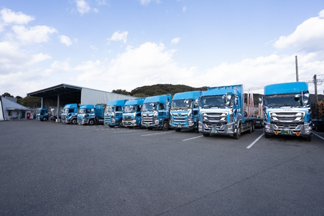 全国的にみても大量に原木を輸送している同社は、「物流の2024年問題」を先取りするかたちで、主に2つの対策を講じてきている。1つはトラックの大型化であり、もう1つはドライバー等の就労環境の改善である。