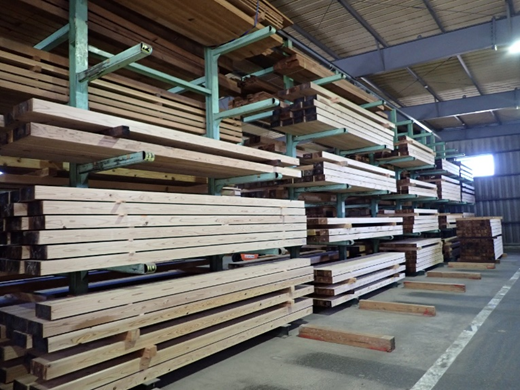 同社は、豊富なムク製品の在庫を持っており、プレーナー掛けのタイミングなどを考慮した管理を行っている。使用している原木は、八溝山系などから産出された枝打ちなどの手入れがされた良材が多く、JASの機械等級に基づいて節の少ないヤング係数70以上の高品質製品を供給している。特に、スギの平角については、他社の追随を許さない種類の在庫を保有している。
