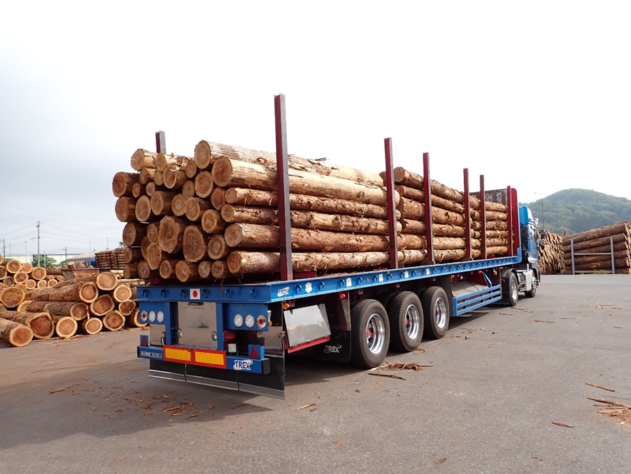 陸送だけに頼らないモーダルシフトにも取り組んでおり、愛媛県西条市の株式会社サイプレス・スナダヤには船舶を利用して原木を定期的に届けている。