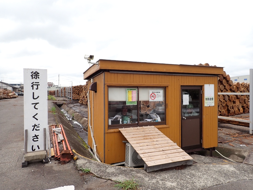 また、土場の入り口には、専任の案内人が常駐しており、ドライバーが土場内のどこに原木を下せばいいかを迅速かつ的確に伝えるようにしている。