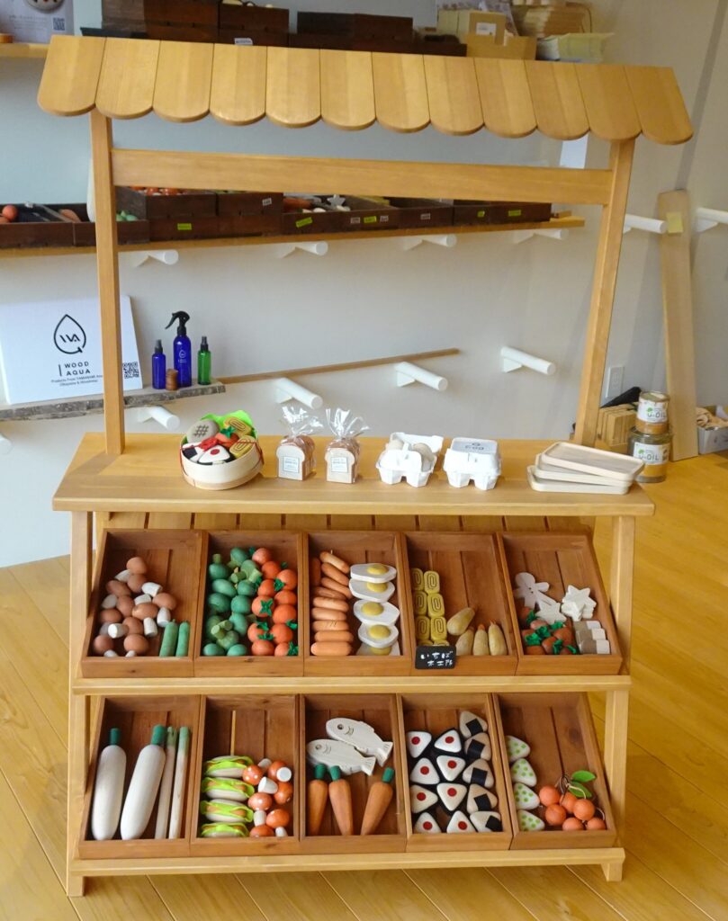 一場木工所が提供している木育関連の商品・サービスは、「こころんプール」にとどまらない。「パン de ドミノ」や「ひなたぼっこマルシェ」といった食べ物型の「木のおもちゃ」や、木材に付着するウイルスや汚れを取り除く除菌剤「ウッドリフレッシャー(Wood Refresher)なども取り揃える。主に使用するのはヒノキ材で、環境負荷低減のため移動距離が近い地域産材と島根県産材などを利用している。