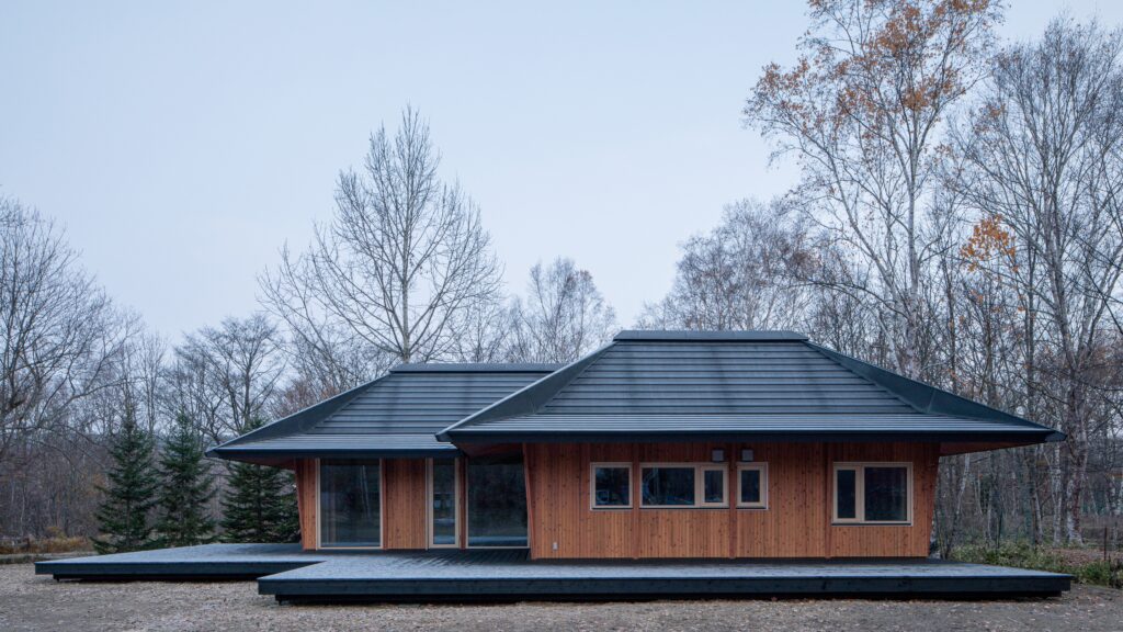 この画期的なシステムを用いた初の物件である弟子屈町の家は、延床面積24坪の平屋建て。柱と梁を一体化させた工法によって、広々とした室内空間を確保した。冬場になるとマイナス20度にも冷え込む厳しい気候風土に合わせて高性能の断熱材や木製のトリプルサッシを採用。温泉熱や太陽光を使うことでエネルギー消費を抑え、真冬でも半袖で過ごせる“エコな家”となっている。
