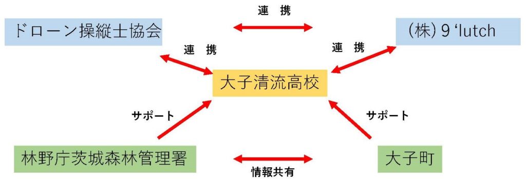 同校では昨年度(2020年度)から、ドローン操縦士協会(東京都渋谷区)と(株)9‘lutchクラッチ)(水戸市)及び大子町の協力を得て「ドローン教育」をスタート。まず教職員がドローン資格を取得して指導体制を整え、今年度から農林科学科森林科学コースの学生を対象に計32時間のカリキュラムを組んで「ドローン教育」を本格化させている。地元の大子町は「将来の森林整備担い手育成事業」によって必要経費を助成し、林野庁の茨城森林管理署(水戸市)が実習フィールドを提供するなど、産官学が連携して学生の取り組みをサポートしている(参照)。