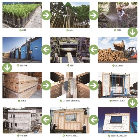 佐伯広域森林組合は、苗木の生産から造林・育林・伐出、原木(丸太)の市売に加え、製材加工も手がけるトップランナーの森林組合として知られる。2009年には年間のスギ原木消費量が約12万m3に及ぶ大型製材工場を立ち上げ、「佐伯型循環林業」の確立を目指している。その一環として、大型パネルの受託加工事業への参入を2017年度に決定。地元工務店などからパネル加工と上棟工事を一体的に受注する体制を整備してきている。