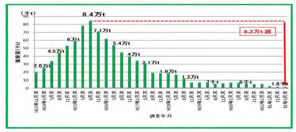 こうした中、同県では木材製品の安全性を確保するため、放射性物質の自動測定装置を開発し、原木市場や製材工場に設置して、安全証明体制を構築。2013年8月には約8万4,000tに上っていたバーク(樹皮)滞留量も、廃棄物処理施設での焼却や運搬、一時保管費用の立て替え支援などを行うことで解消されてきている。今後、木材加工工場の操業が活発化するとバークの排出量も増えるので、燃料や農業用敷料などとして有効活用することが検討されている。