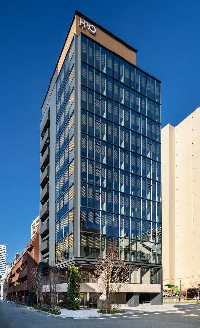 「H1O(Human First Office)」シリーズは従業員10名以下の小規模事業者を対象にしたオフィスビル。「H1O平河町」は11階建てで、鉄骨造だが外観のルーバーに多摩産スギを5.2m3使用している。2月中に開業する予定。