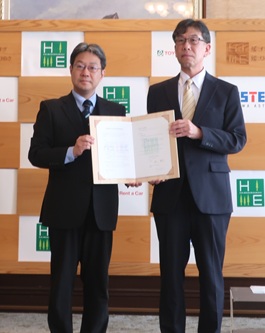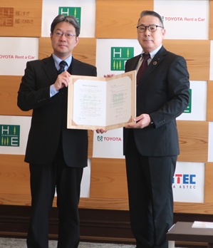 (トップ画像=協定書を手にする昭和アステックの舘川取締役執行役員役(右))