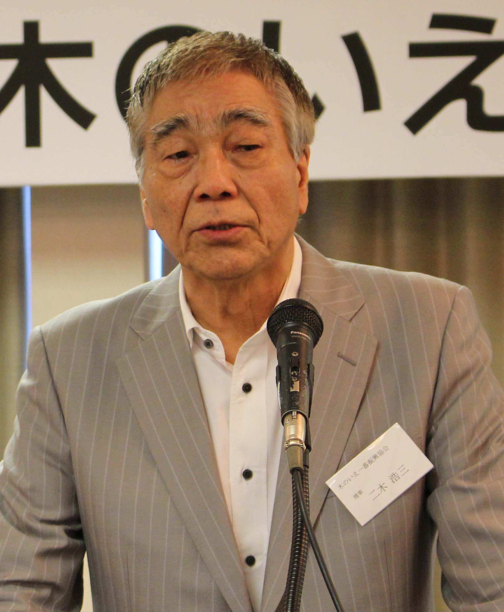地域材を使った木造住宅の普及促進を目指す「木のいえ一番振興協会」(会長=二木浩三・(株)アールシーコア社長)が7月11日に設立総会を兼ねた第1回通常総会を開き、本格的な活動をスタートさせた。二木会長は冒頭の挨拶で、「ムク材を多用した本来の『木の家』を(消費者が)手に入れやすくしたい」と述べ、川上の集成材メーカーやプレカット工場と、川下の住宅メーカーが垂直統合型のネットワークをつくり、里山をからめたライフスタイルの提案など独自の事業を展開していく考えを示した。