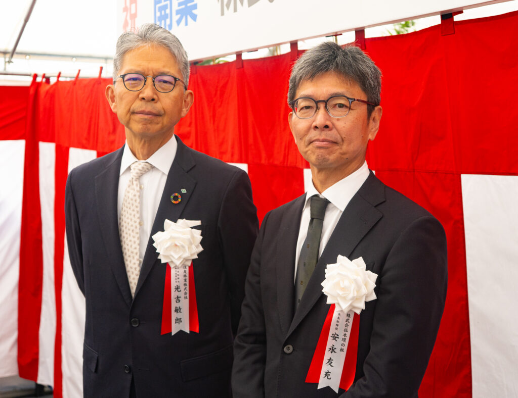 開業式に出席した光吉・住友林業社長(左)と安永・木環の杜社長