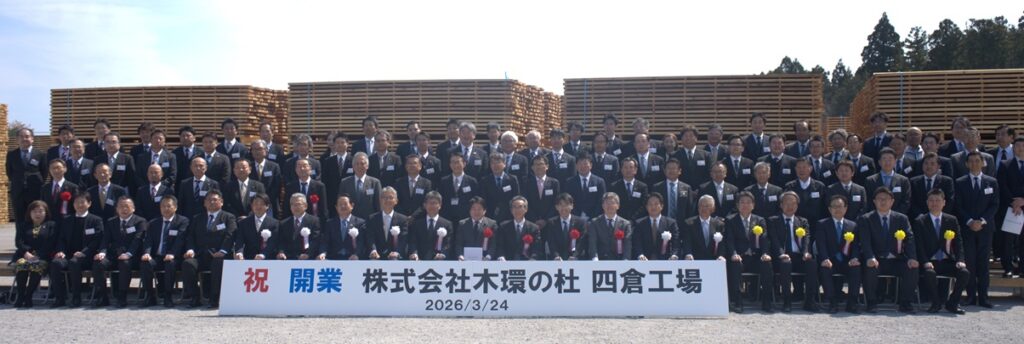 前編からつづく)甚大な被害をもたらした東日本大震災が発生してから15年が経過した今年(2026年)の3月24日、福島県いわき市四倉町のいわき中核工業団地内で、(株)木環の杜(安永友充社長)が建設を進めてきた最新鋭の大型国産材加工拠点「四倉工場」が本格稼働に入った*1。同社は、住友林業(株)(東京都千代田区、光吉敏郎社長)のグループ会社として2023年11月に発足し、国産スギを2×4材などに加工して新たな需要をつくり出す体制づくりを約3年間かけて進めてきた。3月24日に現地で開催された開業式で挨拶した住友林業の光吉社長は、「四倉工場は『木材コンビナート構想』の第1弾になる」と位置づけた上で、「第2弾・第3弾の工場建設に向けた検討も進めている。2030年をめどに国産材投入量100万m3の達成を目指したい」と意欲をみせた。「四倉工場」は、単なる国産材工場の新設にとどまらず、海外のマーケットも視野に入れた戦略拠点の橋頭堡になるという意味合いも持っている。