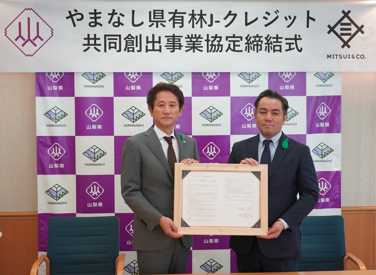 契約締結式に出席した県林業公社の清水譲理事長は、「適切に森林管理を行えばクレジットという新たな価値が生み出され、経営意欲の向上につながる」と期待を述べ、三井物産の内田康弘次世代エネルギー事業部長は、「社有林で学んだノウハウを活かし、森林の価値の可視化に取り組む」と意欲を語った。