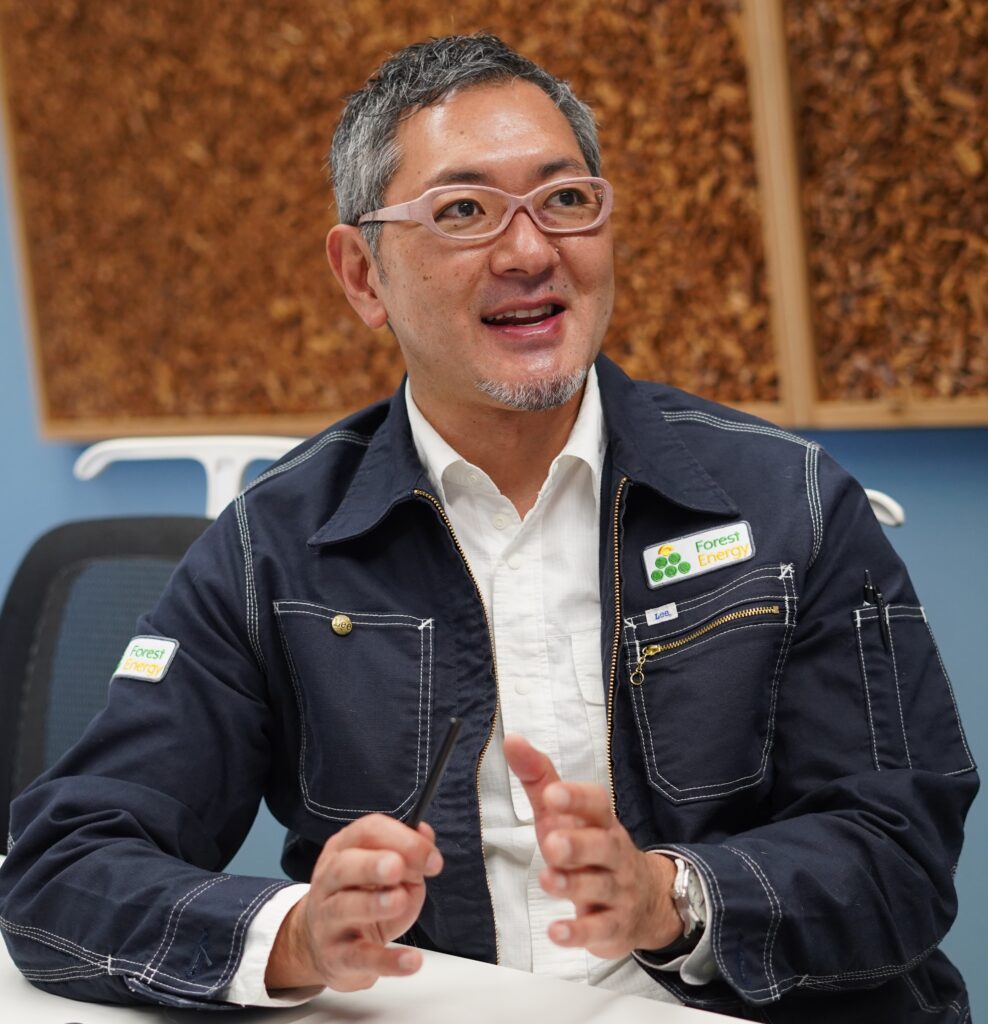 フォレストエナジーの沼社長は、投資会社でキャリアを重ね、太陽光や風力などの再生エネルギー関連事業に携わった後、木質バイオマス利用の分野に参入した。20144年に「くにうみアセットマネジメント」でバイオマス発電事業を開始し、2015年に同社から分社化するかたちでフォレストエナジーを設立。以降、ヨーロッパのバイオマス関連機器メーカーとの業務連携など事業領域を拡大させながら現在に至っている。