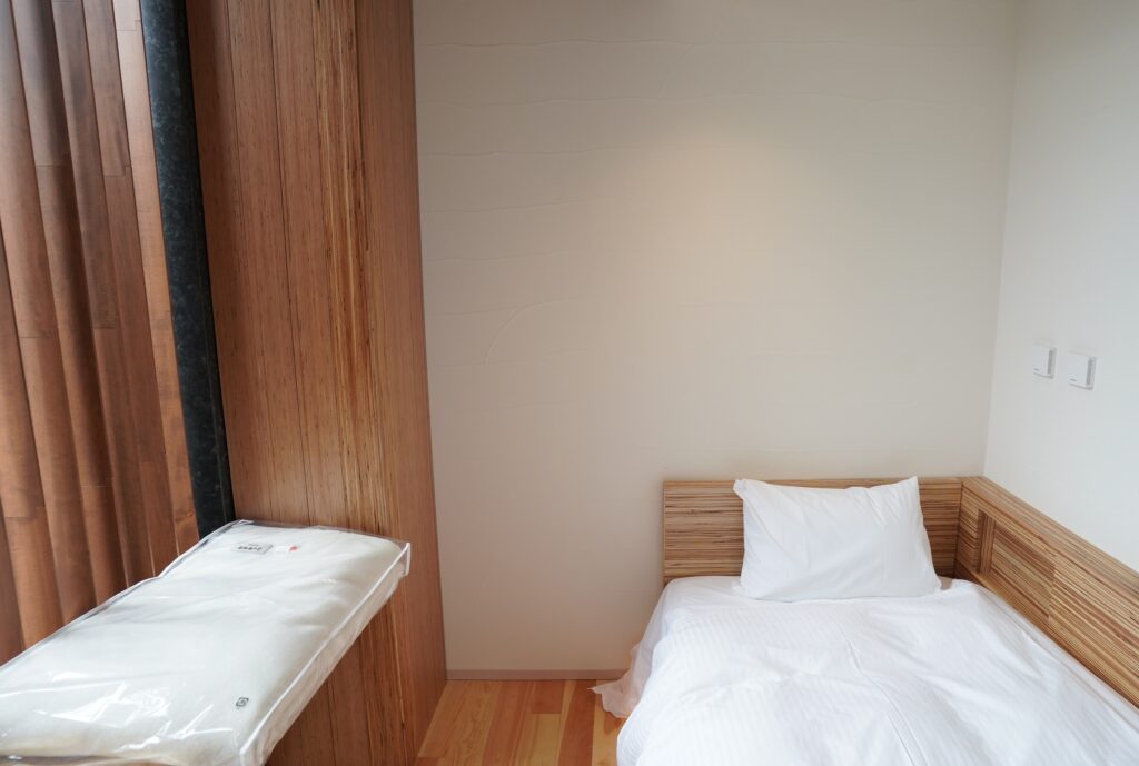 「Port Plus」のコンセプトは「これからの知を育む場」で、施設内には多数の“仕掛け”がある。研修スペースには、至るところに植物が設置されており、環境音や香り空調も使って“森林”を再現。研修用宿泊室の床や家具にはムク(無垢)材を使用し、壁や天井は左官仕上げにして、空間の快適性を高めている。