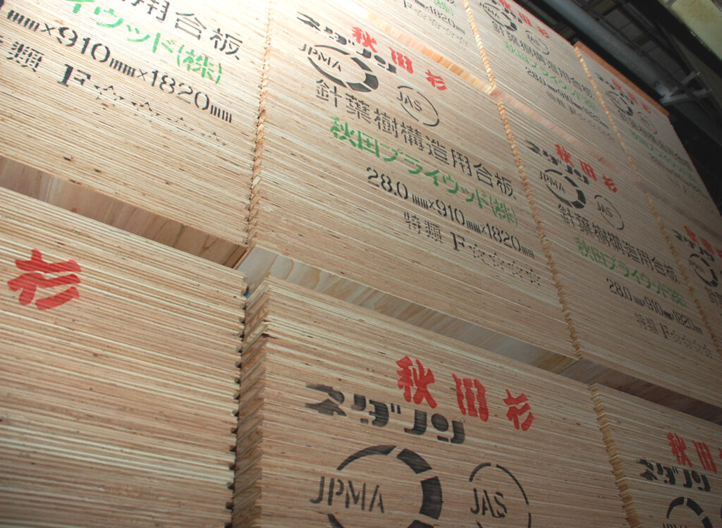 当初は、ロシア材で24mm厚の構造用合板を商品化し、ハウスメーカーなどからは好評を得ていたが、施工をする大工さん達からは「重すぎる」と言われていた。