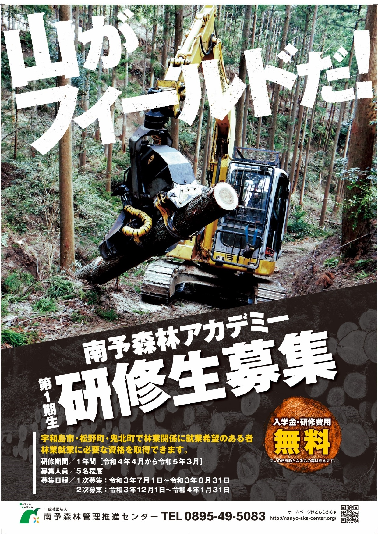同アカデミーの総研修日数は213日。カリキュラムの前半では基礎的技術の習得に重点を置き、後半では県内の事業者や林家のもとでインターンシップ研修を行う。併せて、愛媛大学の協力を得て林業経営などに関する知見も学べるようにして、南予地域で即戦力となる人材の育成を目指す。