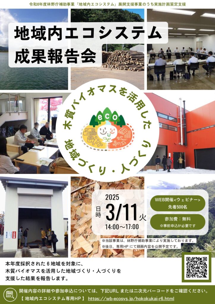 日本森林技術協会は、3月11日(火)午後2時からオンラインで 「地域内エコシステム報告会」を開催する。山梨県北杜市、岩手県西和賀町、山形県鶴岡市、長崎県平戸市、高知県須崎市、奈良県野迫川村の代表が取り組み成果を発表した後、総合討論を行う。発表資料と動画を3月28日(金)まで公開することも予定している。→詳しくは、こちら