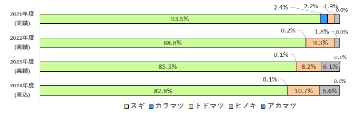 コンポーネント企業も国産構造用製材の調達割合を増やしており、2024年度は20%強に上昇するとみられている(図3参照)。