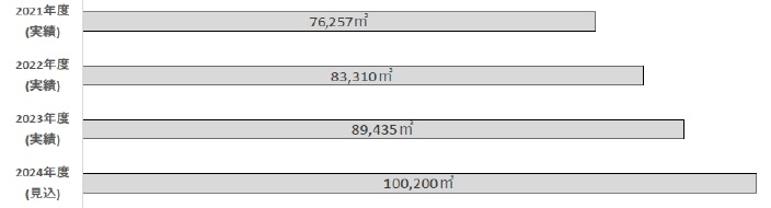 国内のJAS認証工場による生産量は徐々に増えてきており、2023年度の実績は約9万m3、2024年度は10万m3に達する見込みとなっている(図1参照)。