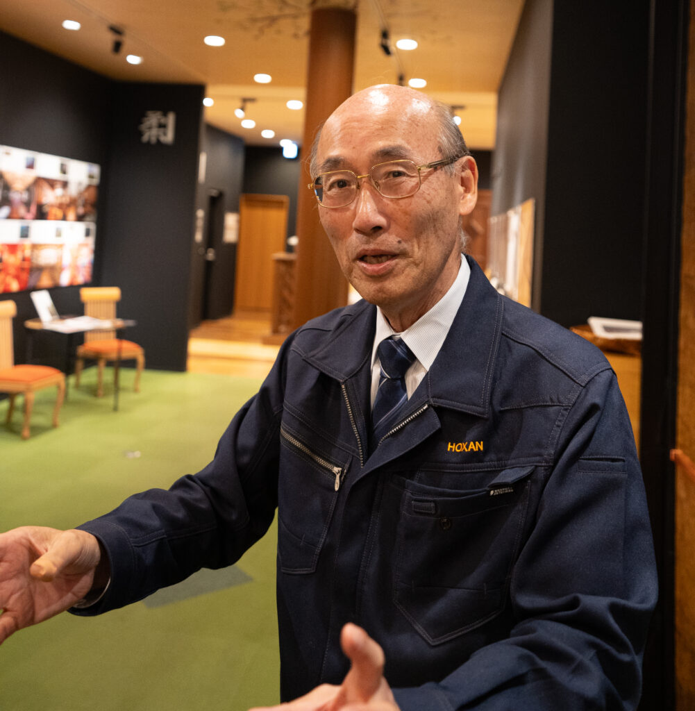 遠藤理事長が東京・新木場にある北三の本社に足を踏み入れたのは、2018(平成30)年以来になる(第574・575号参照)。このときは、本社2階のショールームがリニューアルオープンしたのに合わせて、尾山社長らから同社の歴史や事業方針、直面している課題などを聞いた。 今回もショールームの入り口で、尾山社長が遠藤理事長を出迎えた。