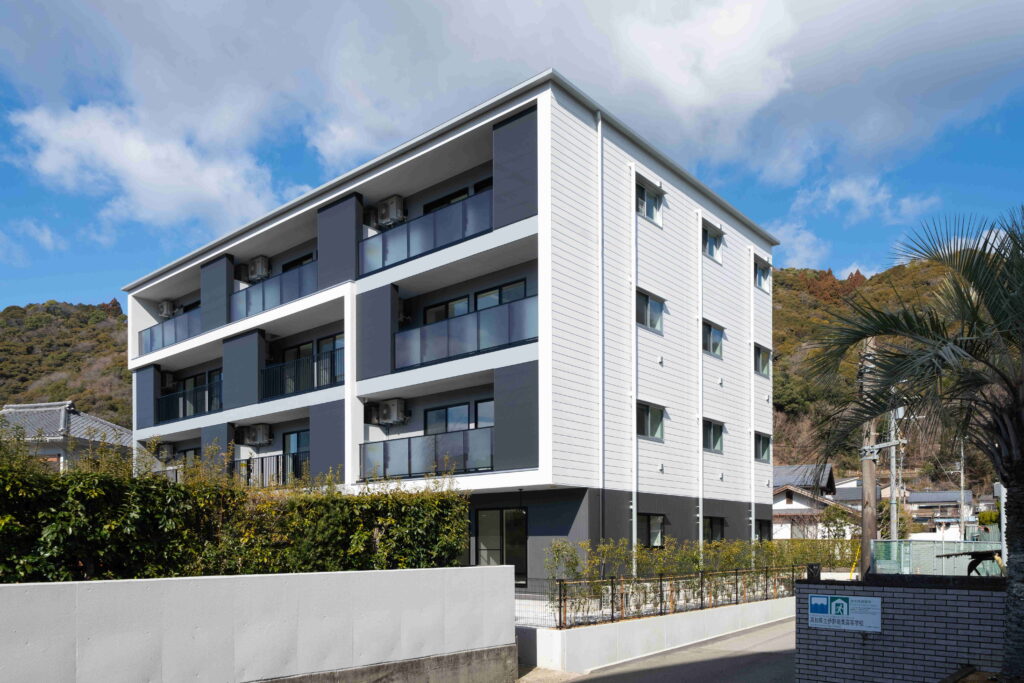 (トップ画像=「環境不動産」に認定された木造4階建て賃貸住宅の外観、画像提供:高知県)