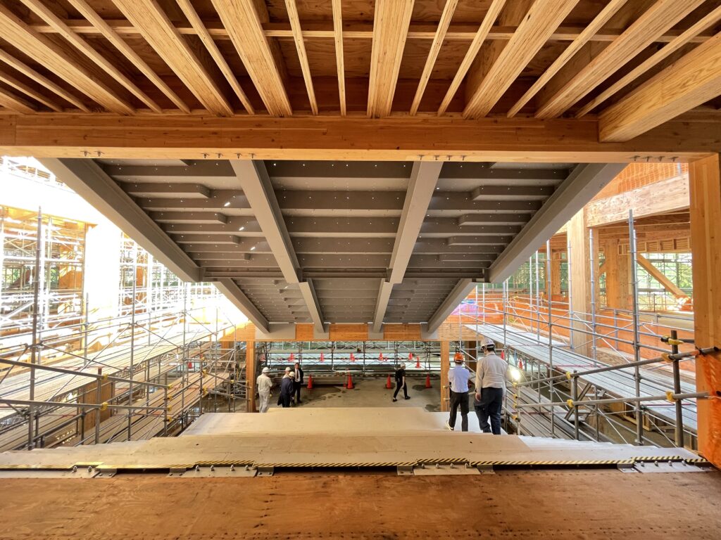 建物の構造は木造で、一部RC(鉄筋コンクリート)造としているが、一方向ラーメン構造にGIR接合を採用することで鉄筋が内部に隠れ、木の温もりが校舎全体で感じられる大空間・大スパンが特長のモデル建築物となっている。