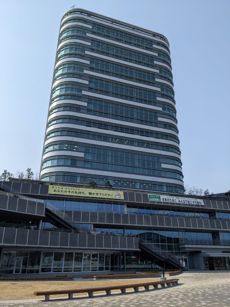 岐阜市役所は18階建てで、1階から3階の低層階に市民窓口や利便施設を集約している