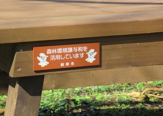 「ふれあいの森」のテーブルなどには譲与税を使っていることを明記している