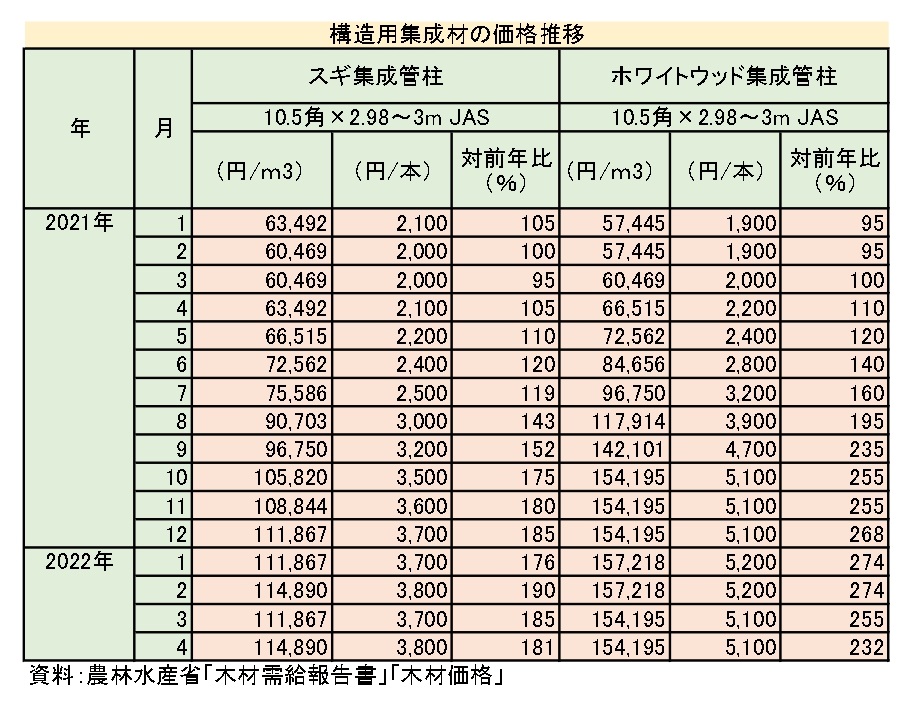 (前編からつづく)昨年(2021年)3月頃から顕著になった木材需給のひっ迫感が依然として解消されず、国産材の原木・製品価格は高止まりの傾向にある。このこと自体は、長年にわたって材価低迷に苦しんできた国
