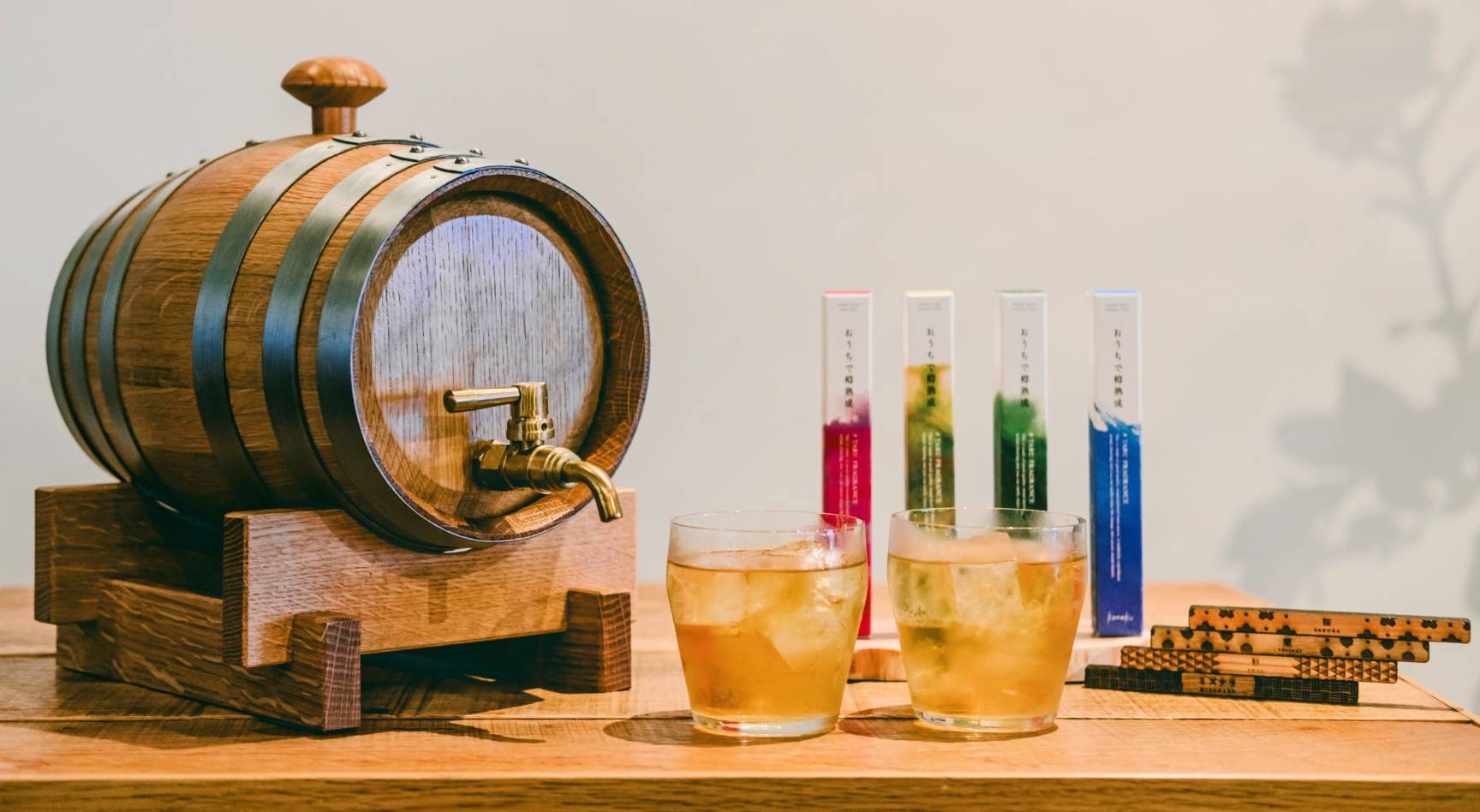 ウイスキーや日本酒、焼酎などのお酒に自分好みの木の香りをつけられるアイテムが8月5日に発売される。 “木の幹からできるお茶”を手がけた(株)konoki(福岡県福岡市、共同代表=内山浩輝・陣脇