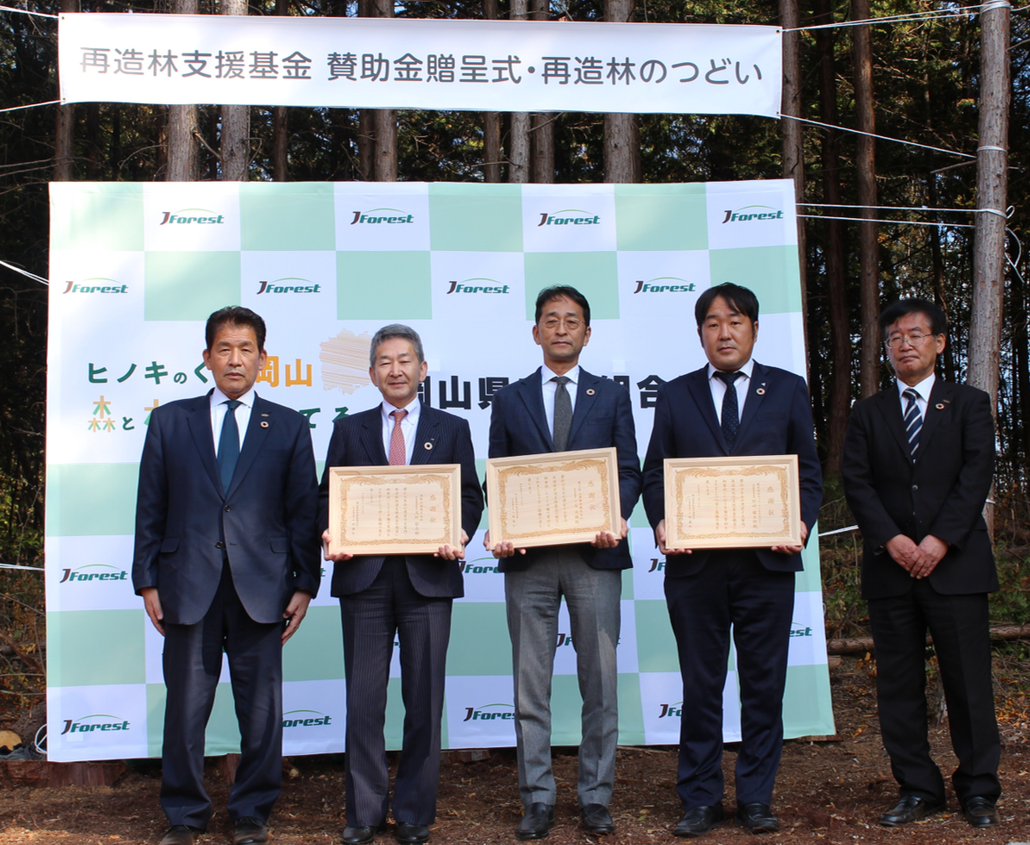 岡山県森連の再造林支援基金に民間3社が初の賛助金拠出