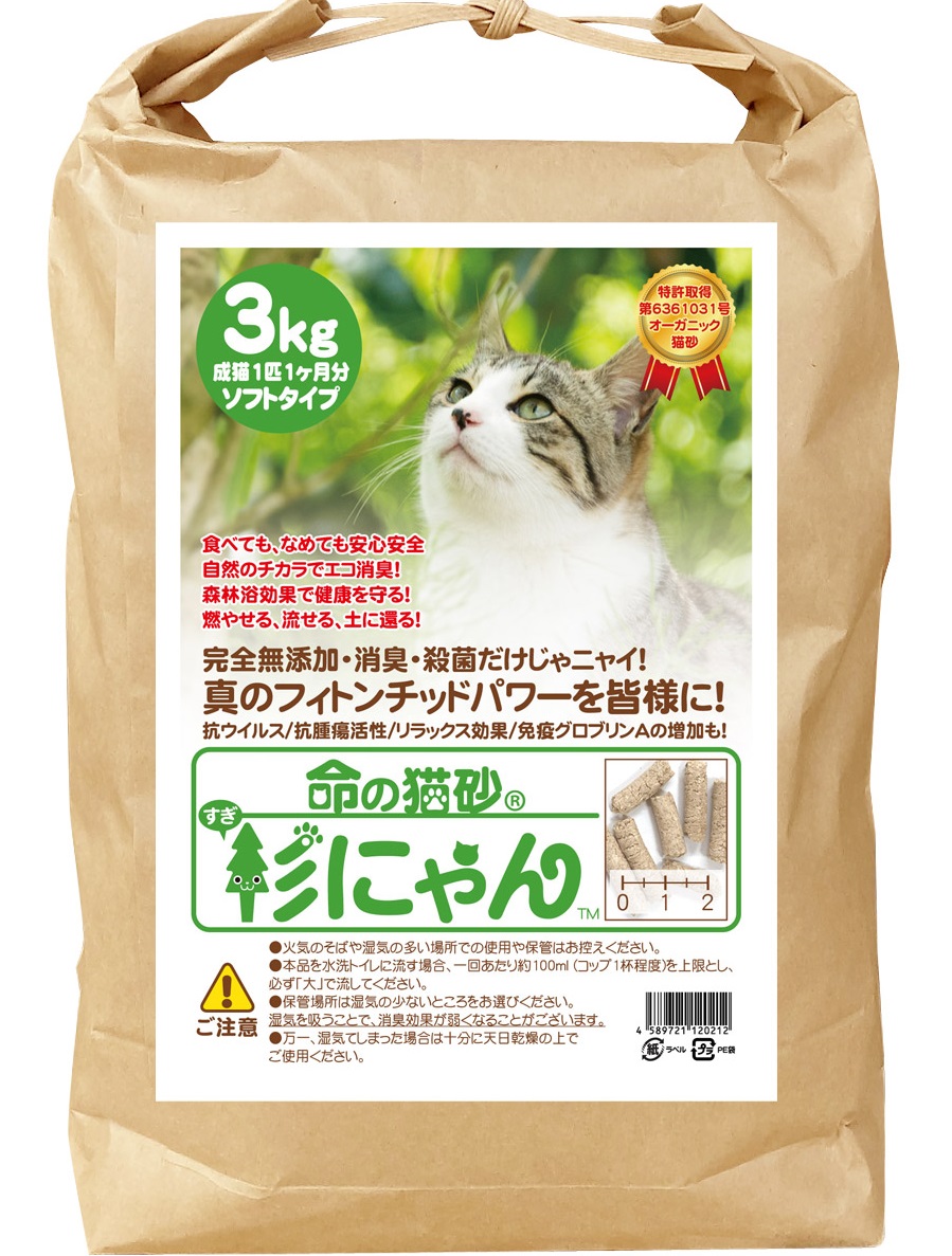 ペット用品の猫砂にスギのおが粉を活用している(株)杉のチカラ(埼玉県久喜市、高橋則之・代表取締役)が事業拡大に向けて資金調達を行っている。同社が生産・販売している「命の猫砂 杉にゃん」は、猫の健康管
