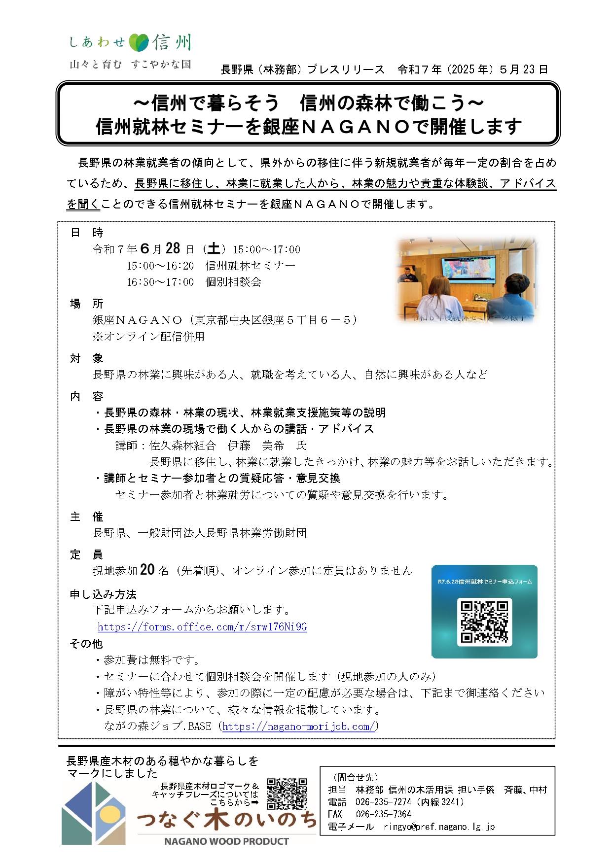 有楽町駅前広場で「森林(もり)の仕事パーク」を開く