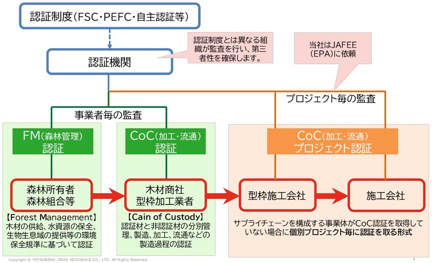 (前編からつづく)三菱地所レジデンス(株)(東京都千代田区、宮島正治・代表取締役社長執行役員)は、“責任ある木材調達”を実践するために認証材の利用を進めるだけでなく、マンションなどの建築現場で多用して