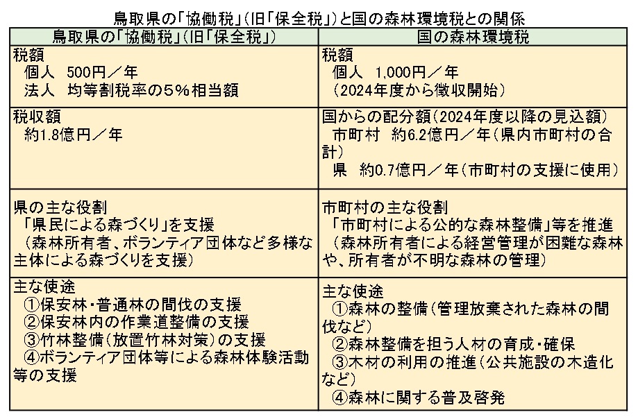 鳥取県は、2005年度に導入した「森林環境保全税(保全税)」を今年度(2022年度)末で廃止し、来年度(2023年度)から「豊かな森づくり協働税(協働税)」をスタートさせる。「保全税」を財源にして行