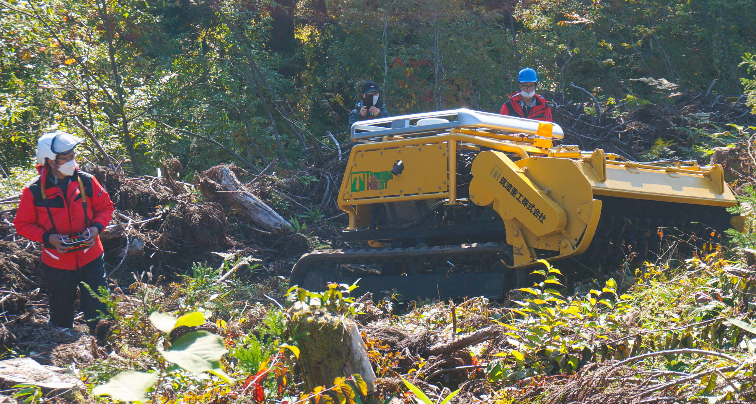 秋田県有林内で先進的造林保育機械等デモンストレーションを実施、約120人参加