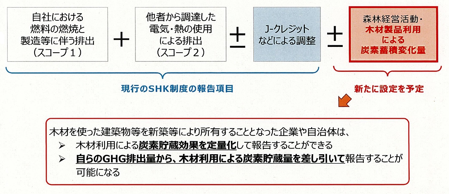 地球温暖化対策推進法に基づいて政府が運用しているSHK制度(温室効果ガス排出量算定・報告・公表制度)の算定対象に、木材製品による炭素貯蔵量量が追加されることになった。木材の利用を通じたCO2の固定機能