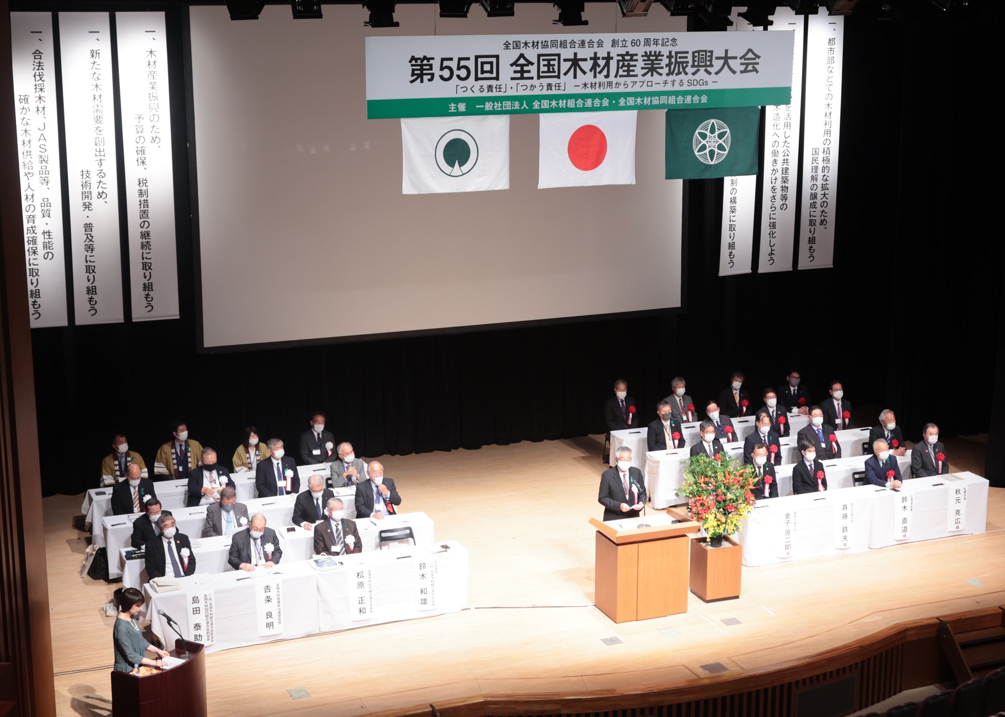 全国木材協同組合連合会の創立60周年を記念する「第55回全国木材産業振興大会」が10月14日に北海道札幌市のかでる2・7(道立道民活動センター)で開催された。「『つくる責任』・『つかう責任』─木材利