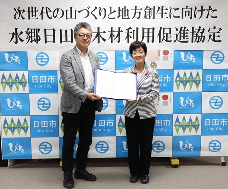 大分県の日田市(椋野美智子市長)は、大手ログハウスメーカーの(株)アールシーコア(東京都渋谷区、壽松木康晴社長)と都市(まち)の木造化推進法に基づく「木材利用促進協定」を10月2日に締結した。同市及