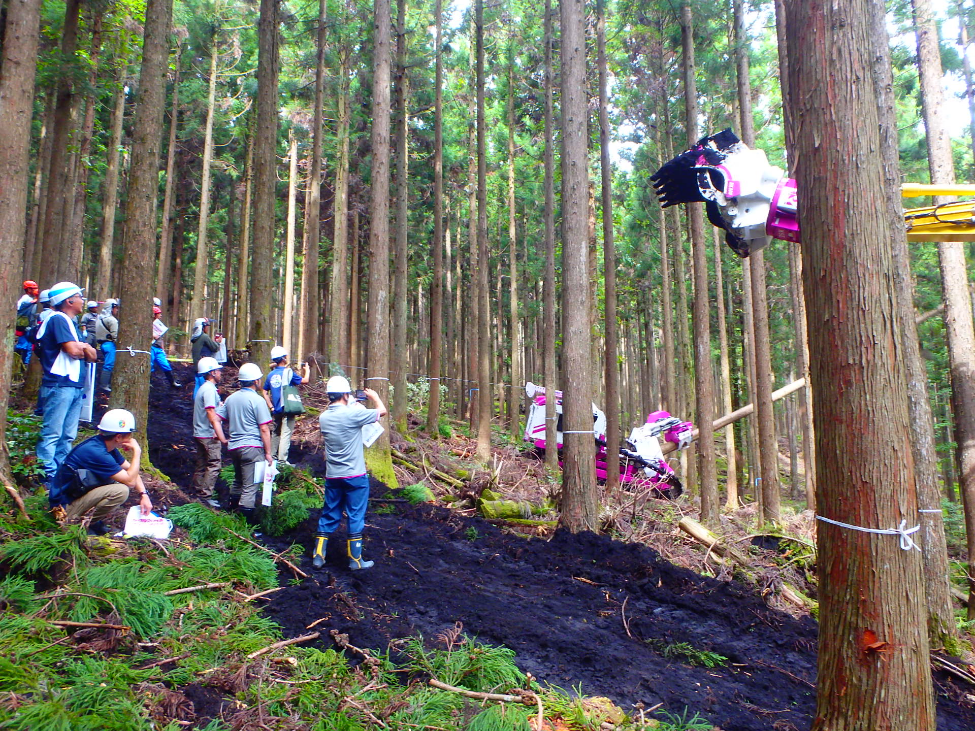 秋田県有林内で先進的造林保育機械等デモンストレーションを実施、約120人参加