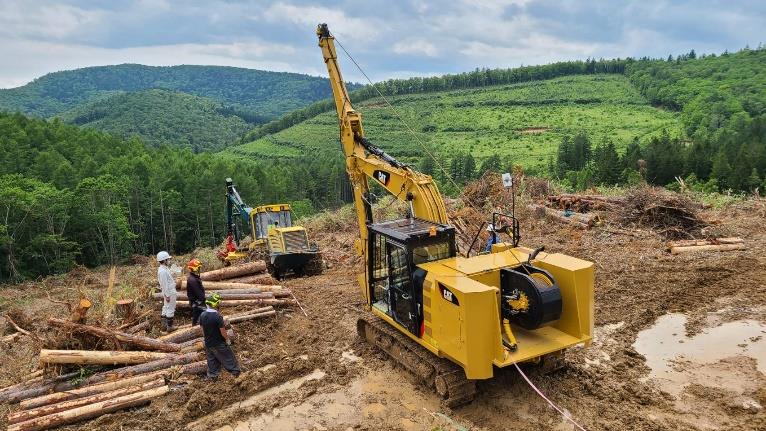 高性能林業機械などを使った傾斜地作業を安全にサポートする「テザー」が日本キャタピラー合同会社(東京都中野区、本田博人社長)から1月29日に発売された。同社と住友林業(株)(東京都千代田区、光吉敏郎社