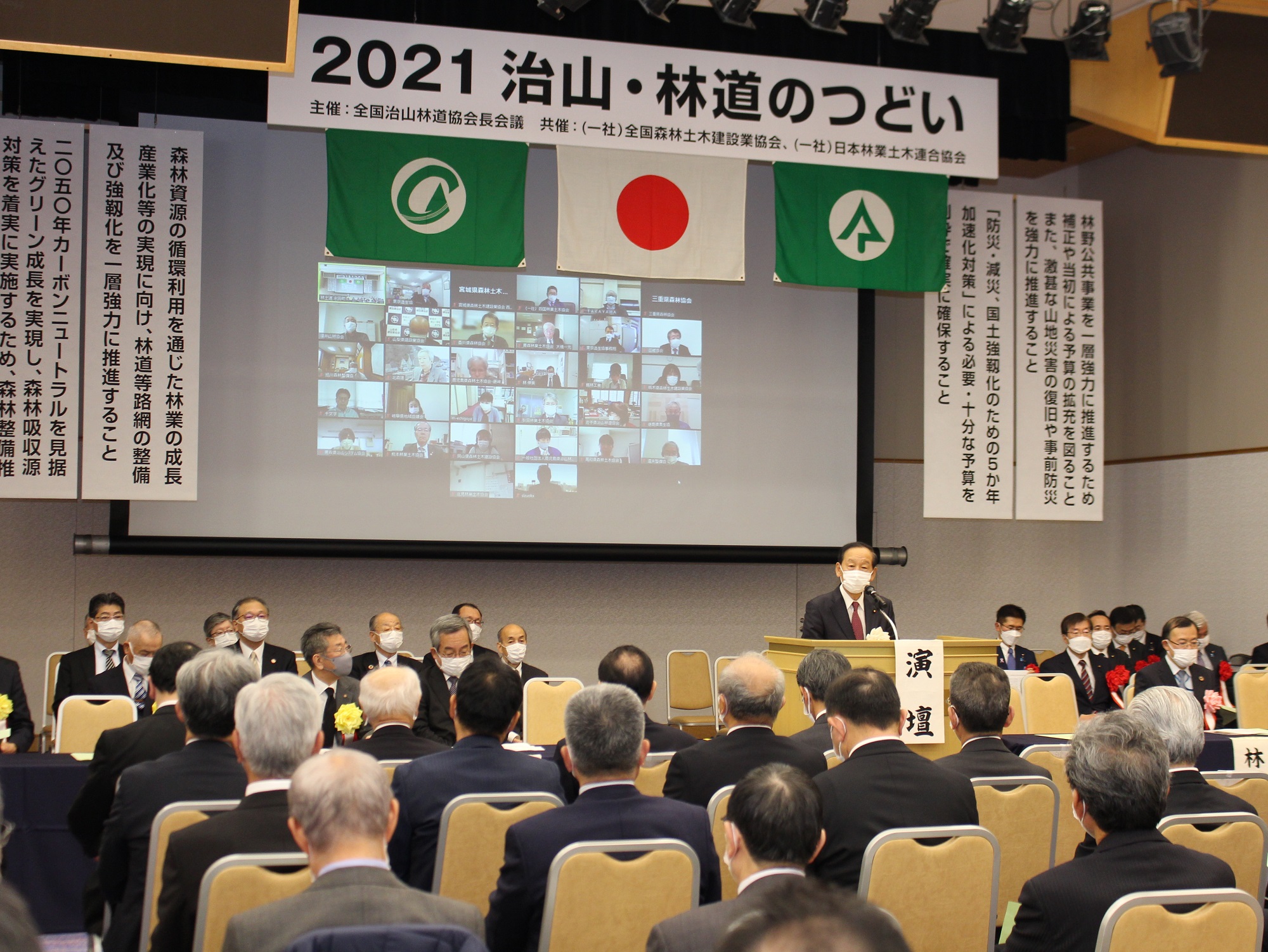 全国治山林道協会長会議は、11月24日に東京都内で「2021 治山・林道のつどい」をオンライン併用で開催した。全国の関係者が参集し、「防災・減災、国土強靭化のための5か年加速化対策」の予算を別枠で確